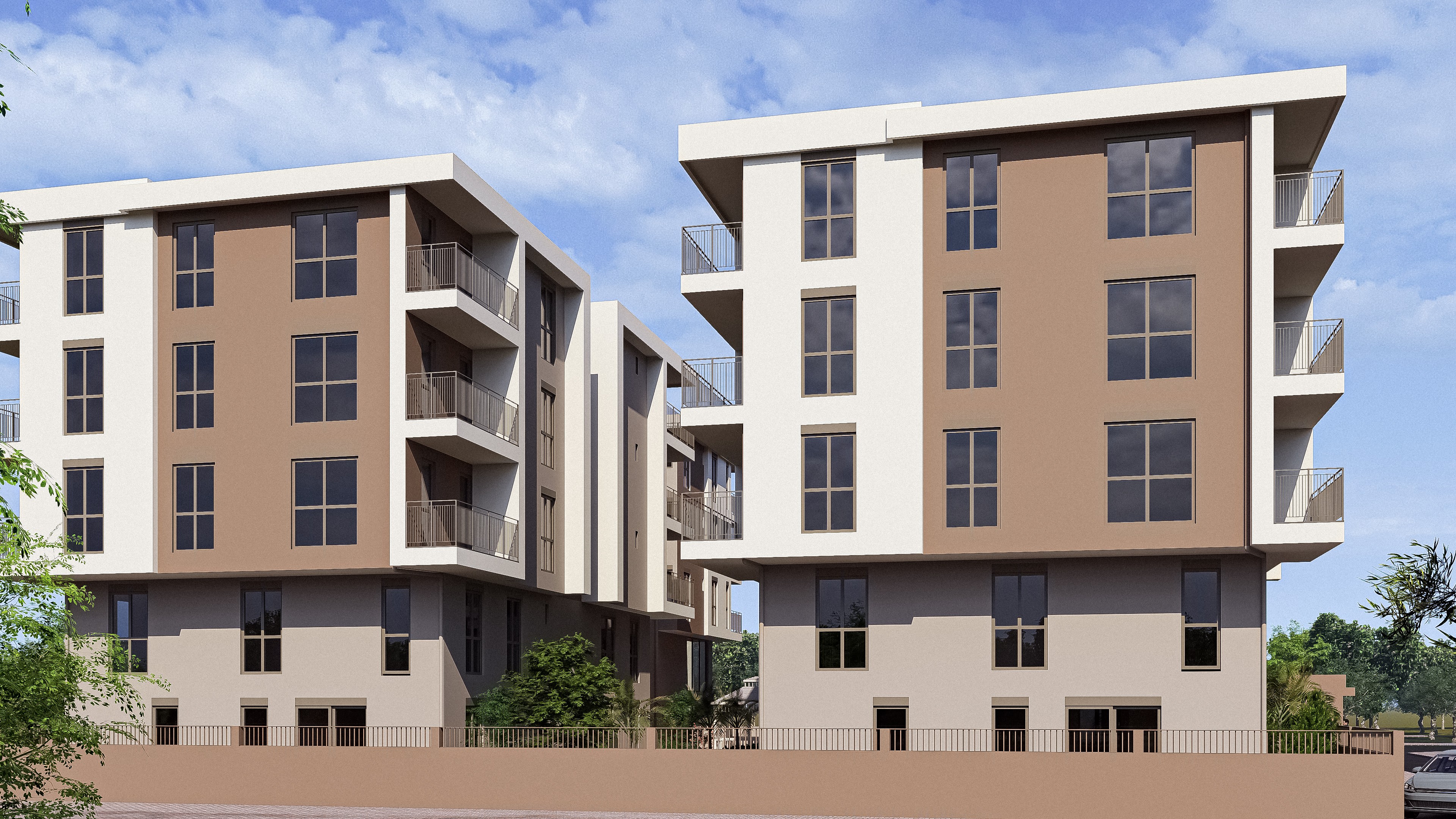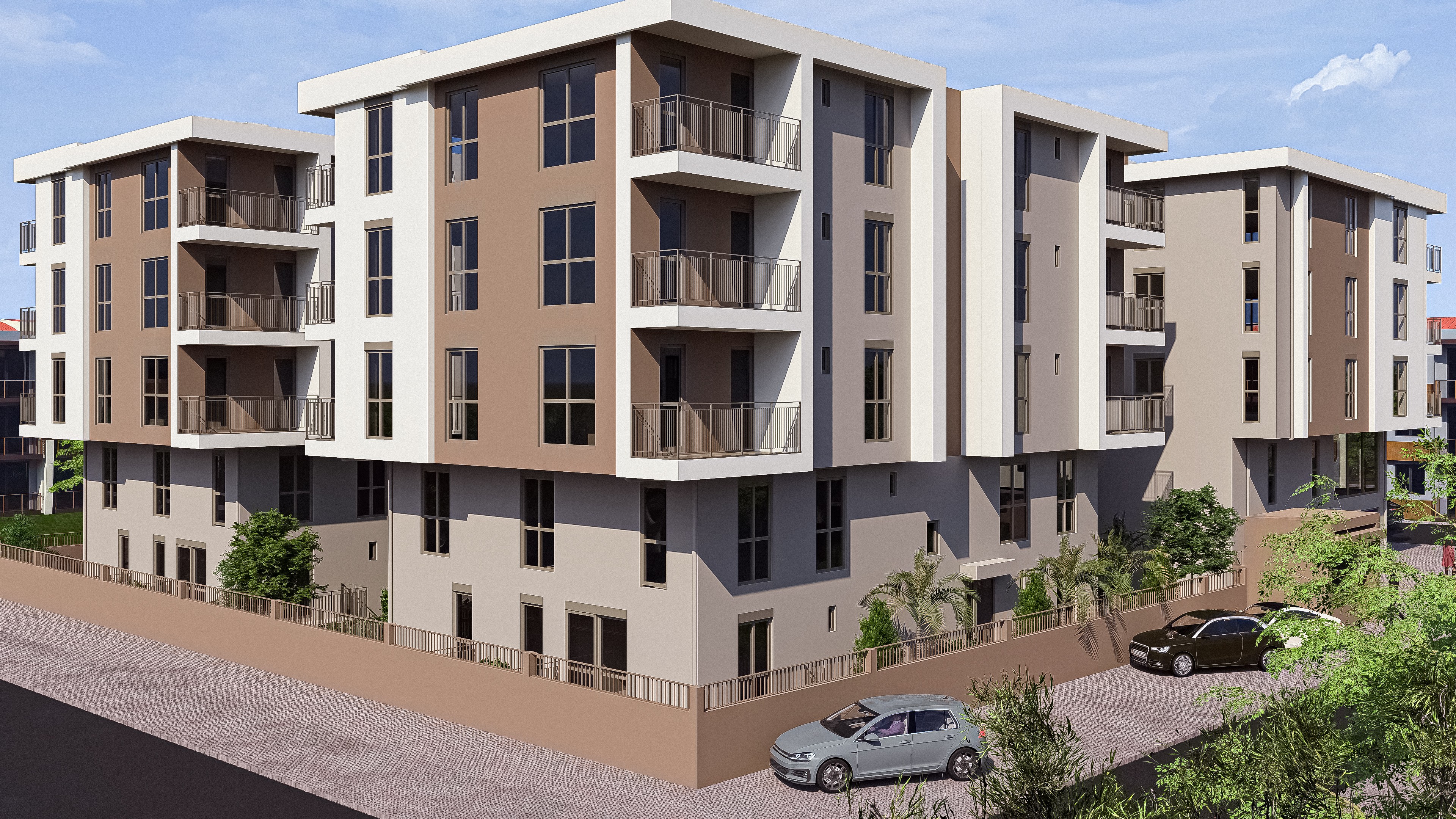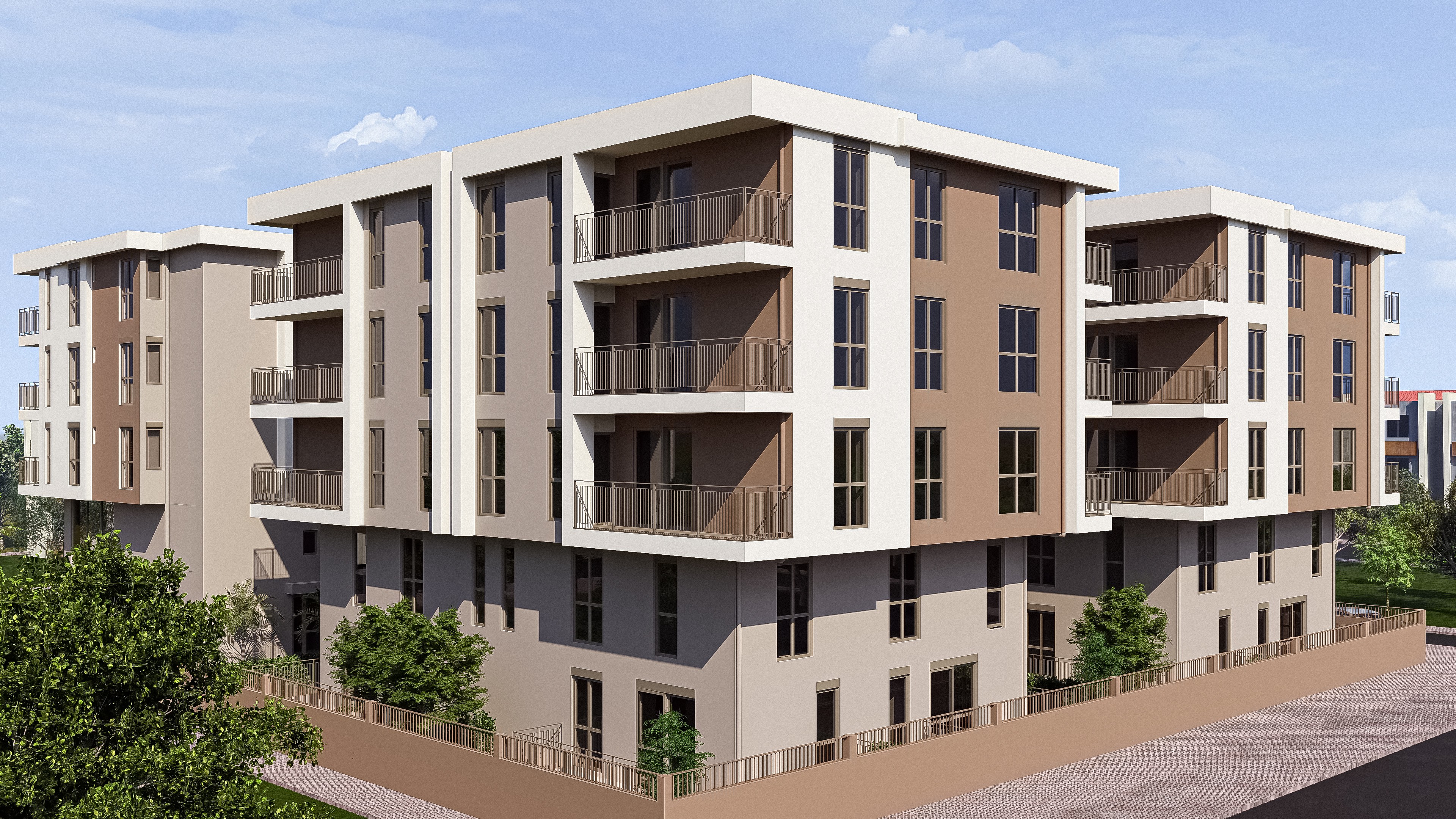 Tasarım, biçimin kendi içinde anlam ürettiği bir yaklaşım üzerine kurulmuştur. Sıcak toprak tonları ile kırık beyazın bir araya gelişi, cephede Akdeniz iklimiyle örtüşen ısıl bir denge ve tutarlı bir mimari atmosfer oluşturmaktadır. Balkon ve pencere yerleşimi, cephe geometrisiyle bütünlük içinde ele alınmış; ışık ve gölgenin kütleler üzerindeki etkisiyle mekânsal derinlik sağlanmıştır. Zemin kattaki ticari birimler geniş cam yüzeylerle sokağa açılarak komplekse kentsel bir canlılık katmaktadır.