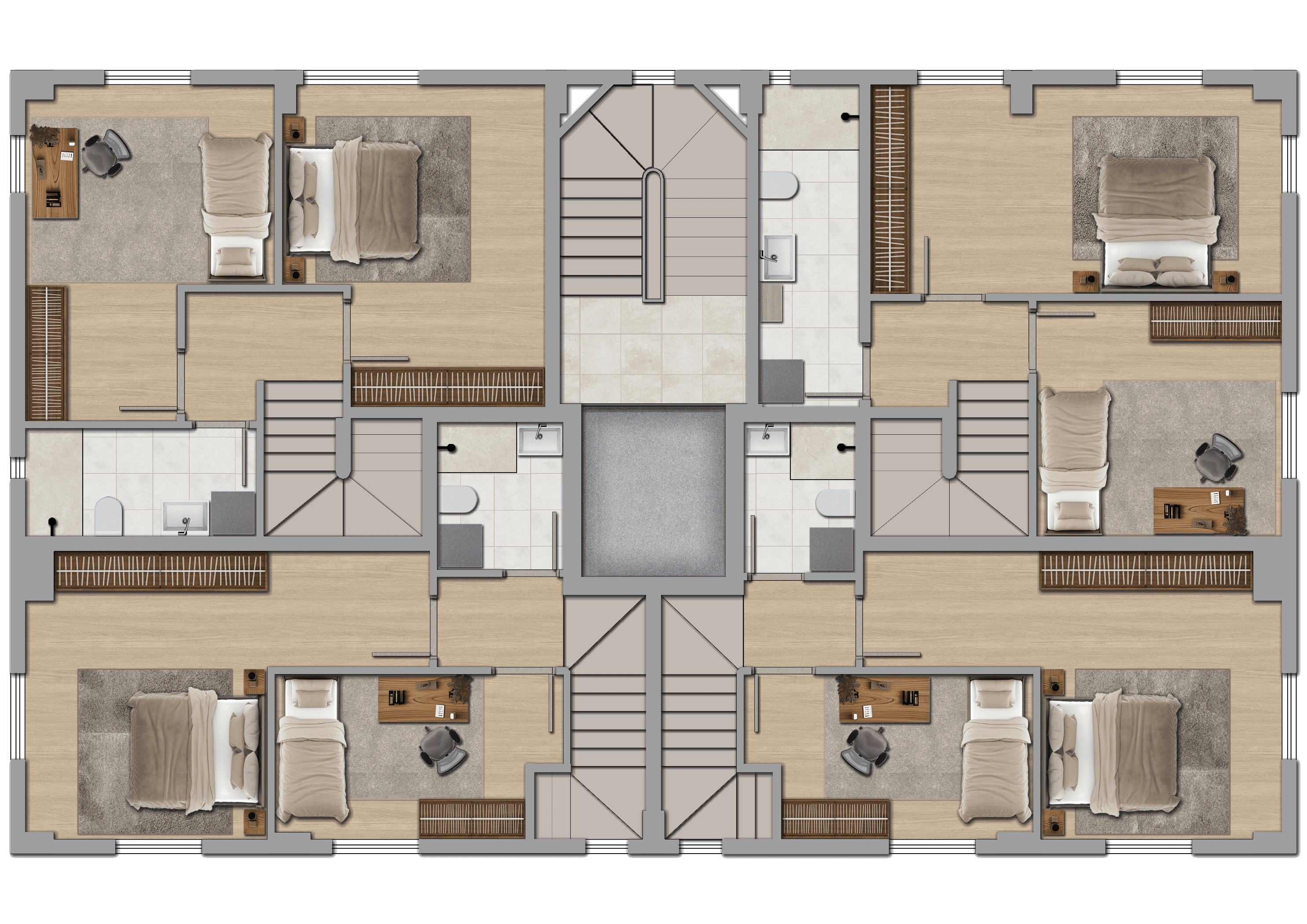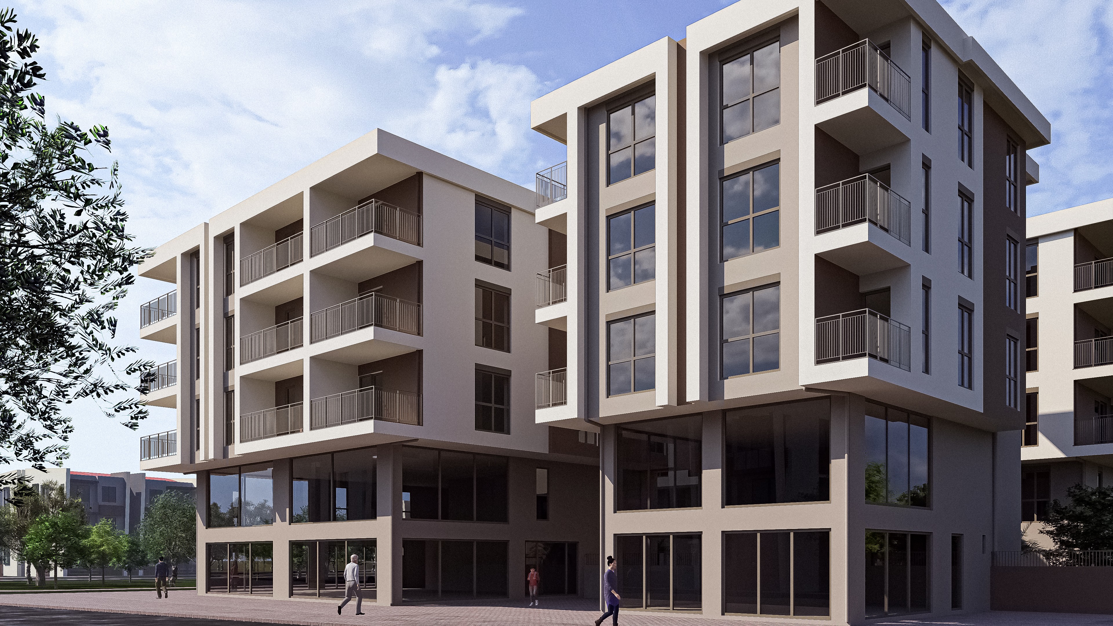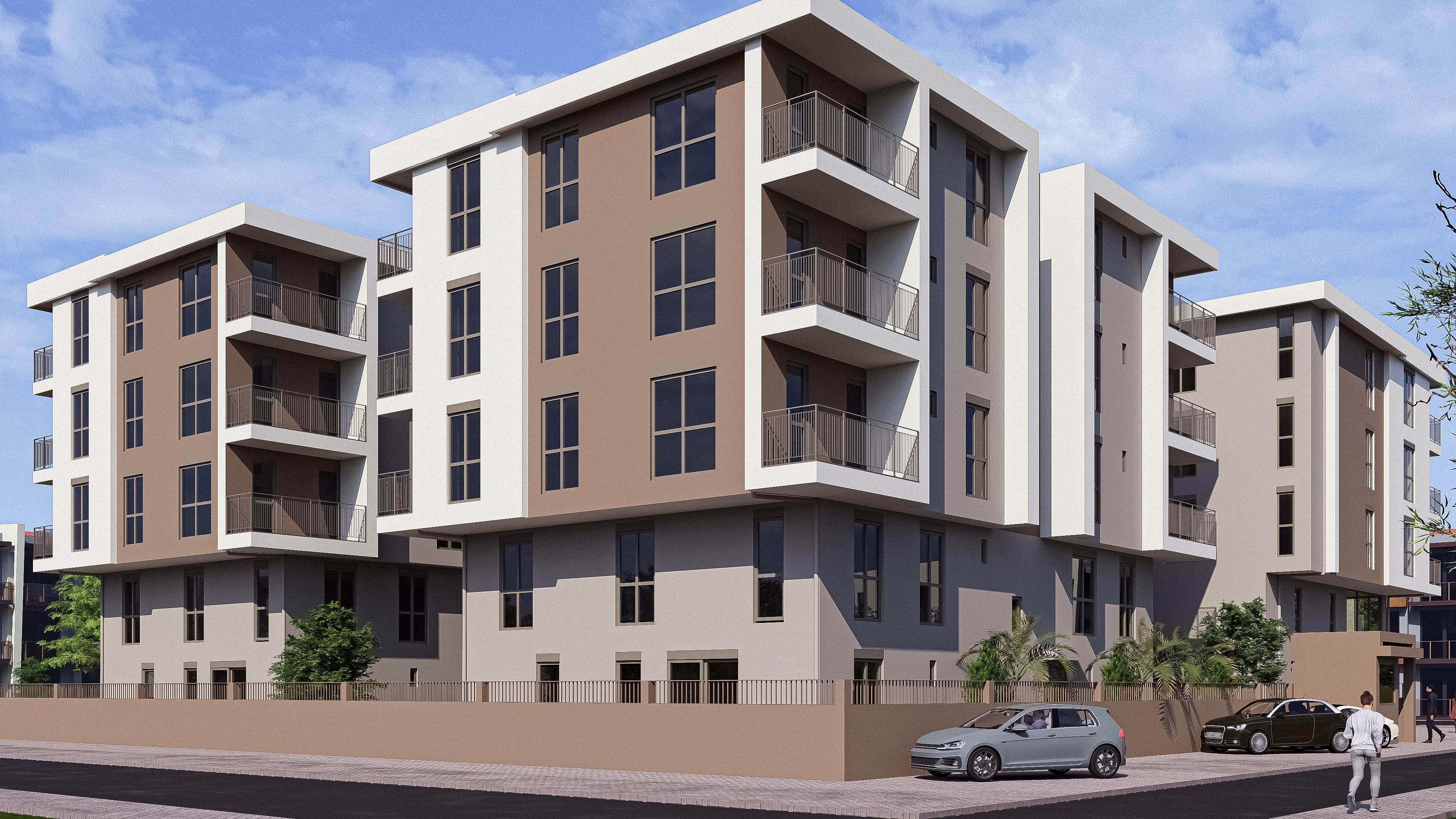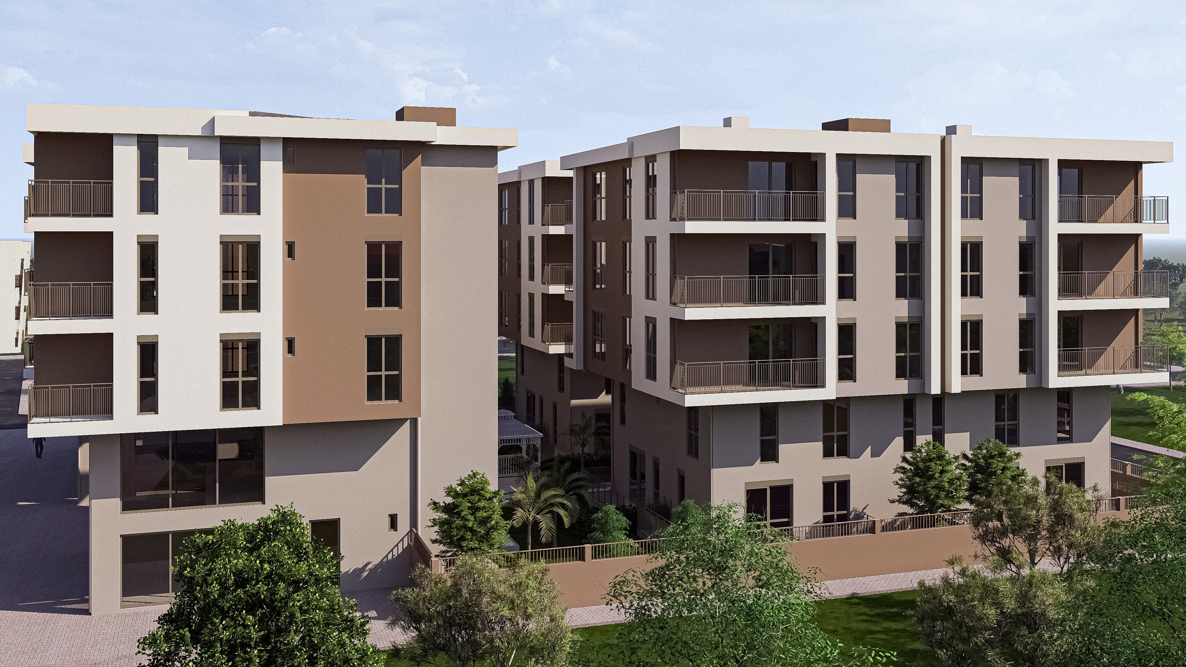 Tasarım, biçimin kendi içinde anlam ürettiği bir yaklaşım üzerine kurulmuştur. Sıcak toprak tonları ile kırık beyazın bir araya gelişi, cephede Akdeniz iklimiyle örtüşen ısıl bir denge ve tutarlı bir mimari atmosfer oluşturmaktadır. Balkon ve pencere yerleşimi, cephe geometrisiyle bütünlük içinde ele alınmış; ışık ve gölgenin kütleler üzerindeki etkisiyle mekânsal derinlik sağlanmıştır. Zemin kattaki ticari birimler geniş cam yüzeylerle sokağa açılarak komplekse kentsel bir canlılık katmaktadır.